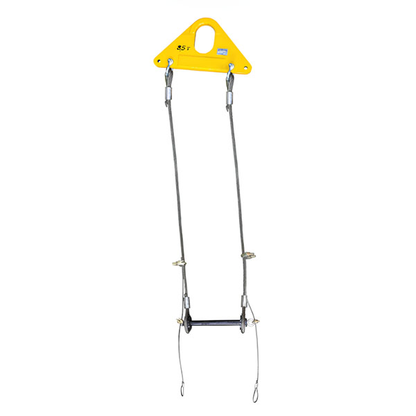 - Подвес на крюк подъёмного крана осуществляется через траверсу, а гибкая связь обеспечивается канатными стропами.